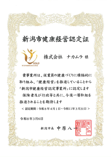 「新潟市健康経営認定制度」 GOLDクラスに認定されました